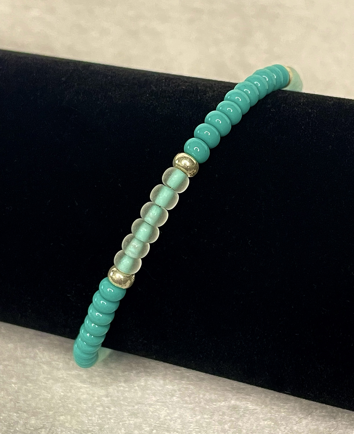 Add to cart Bracelets Light translucent green and opaque white 6/0 seed beads with metal accent $20.00