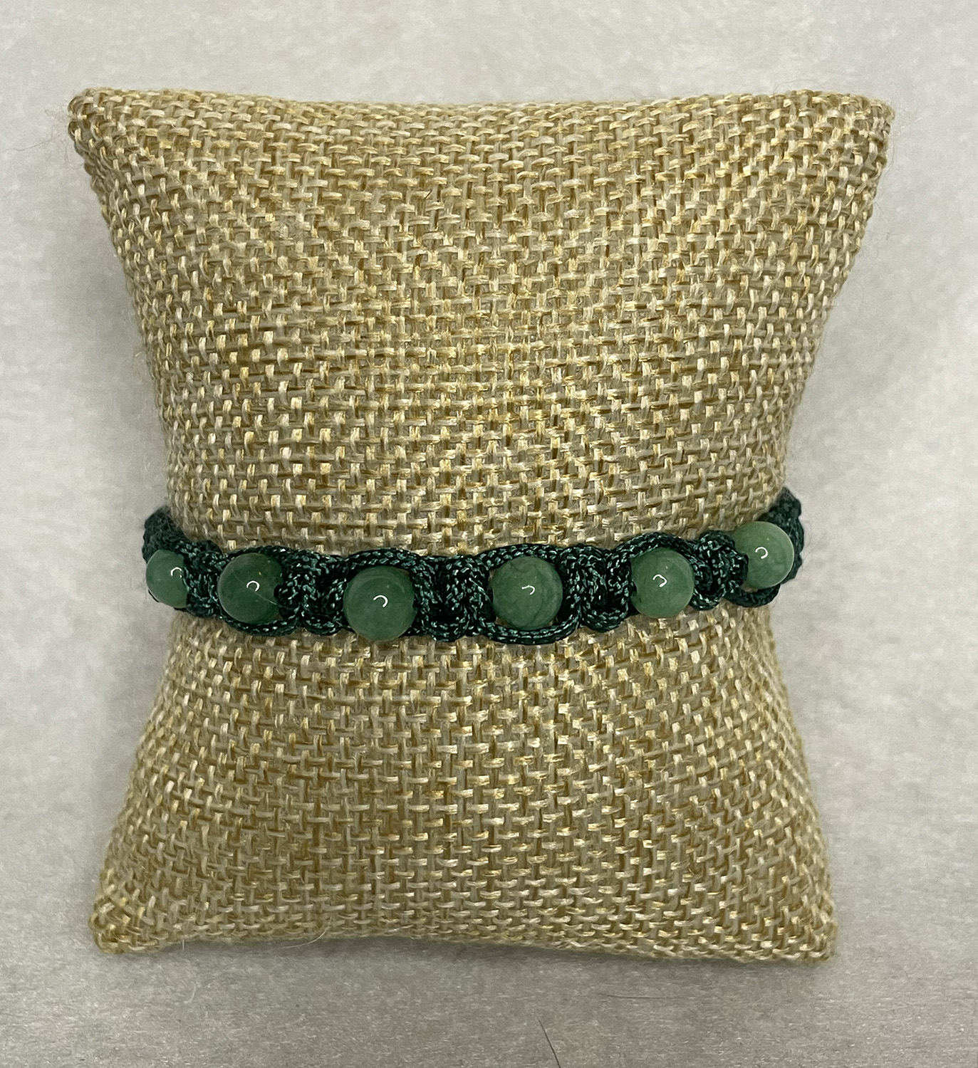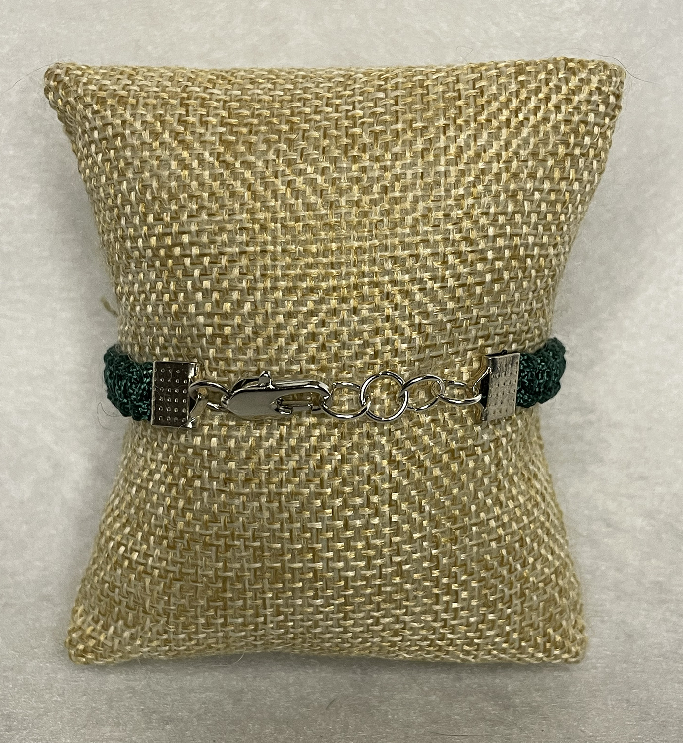 Add to cart Bracelets Dark green macrame bracelet with green beads and silver lobster claw clasp $14.00