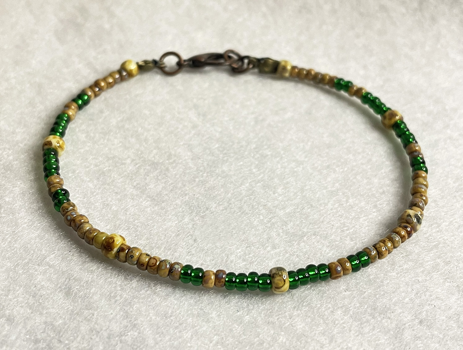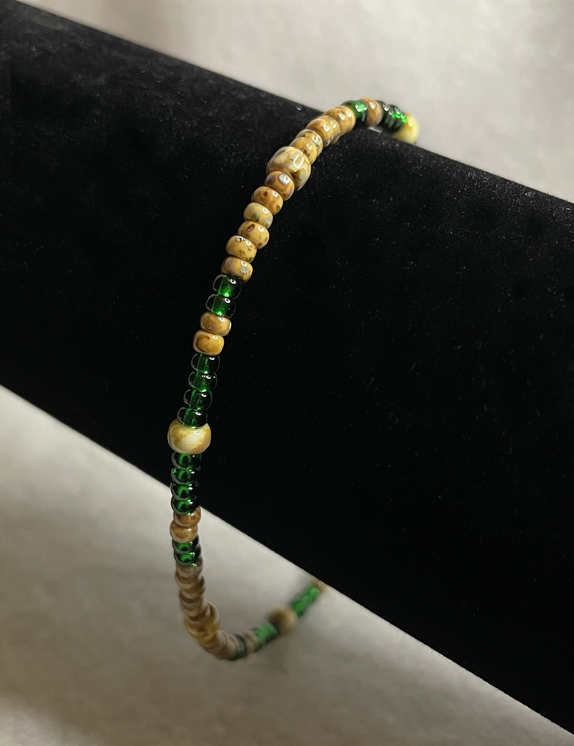 Add to cart Bracelets Grey 8/0 seed bead double strand bracelet with green, clear, and pearlescent accent $22.00
