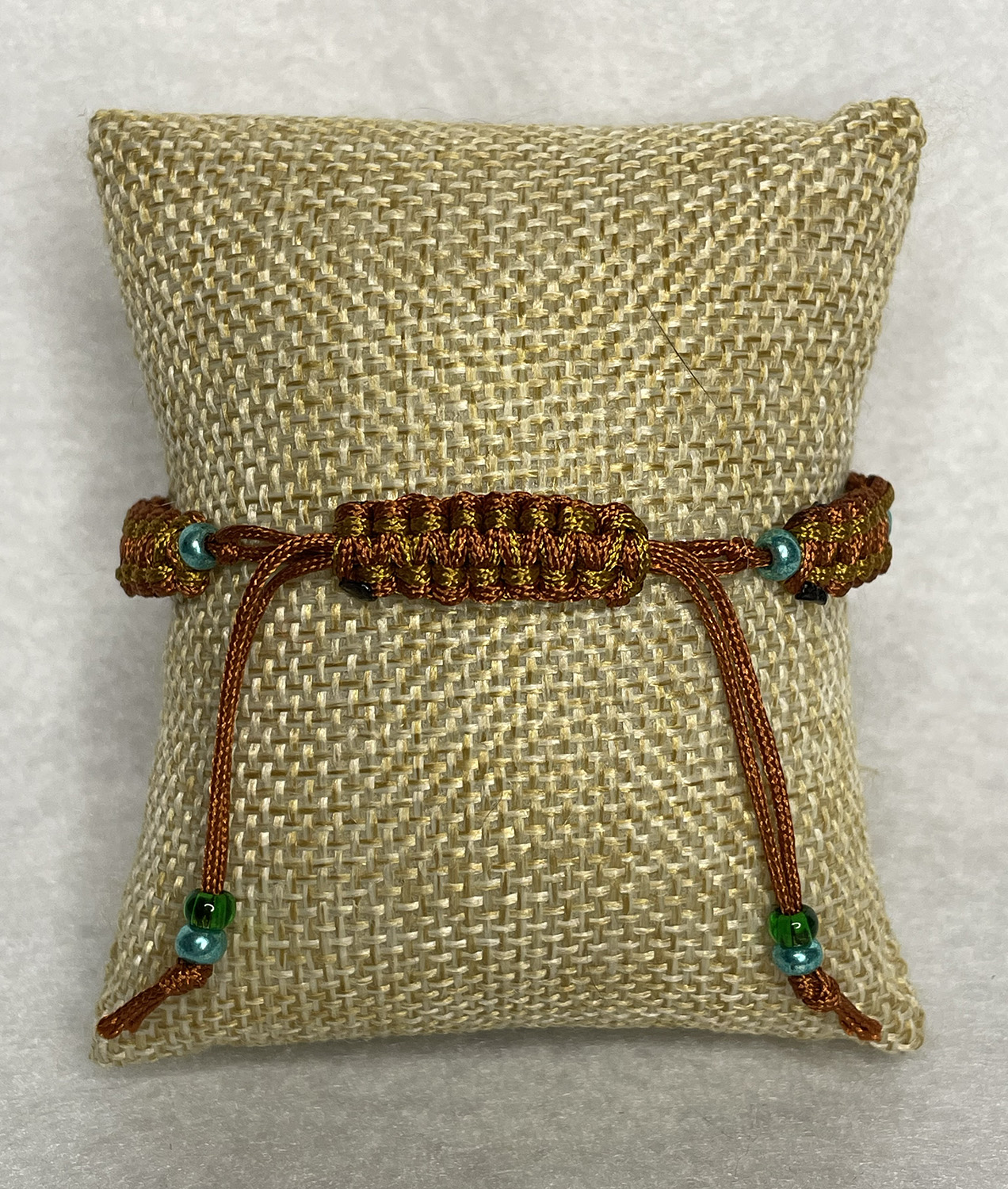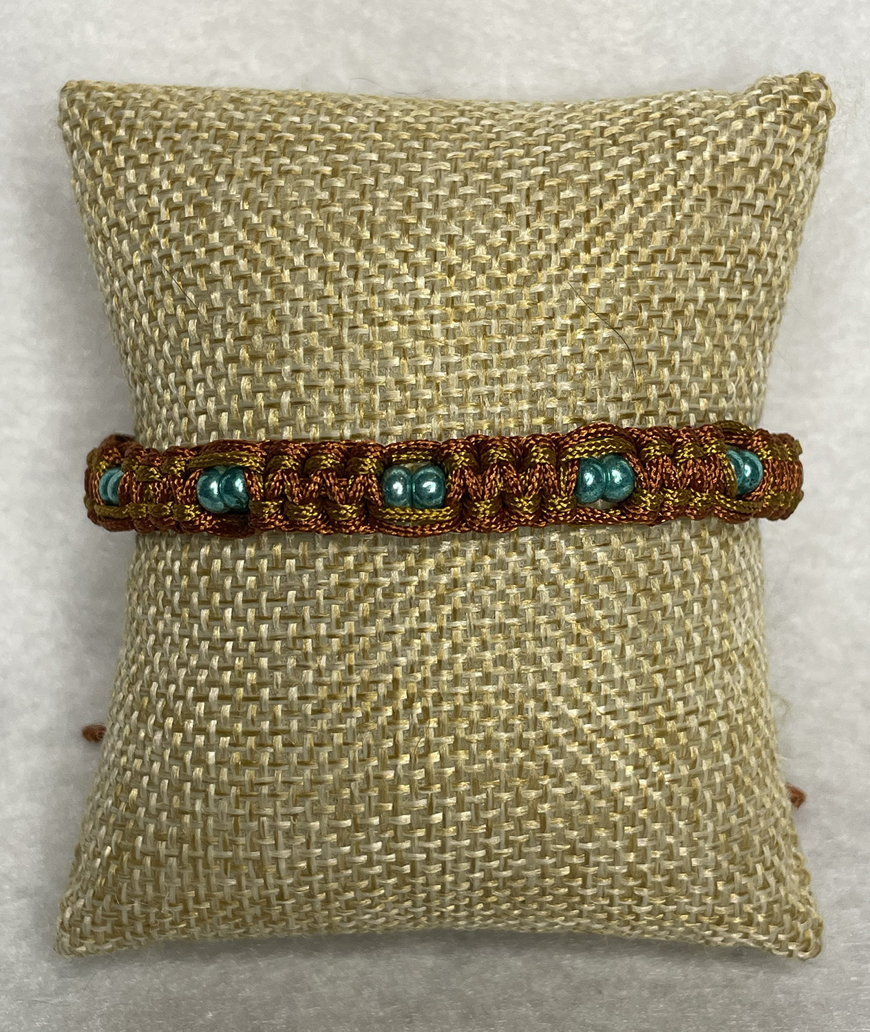 Out of Stock Add to cart Bracelets Two tone silver and white cord macrame with blue glass and metal beads