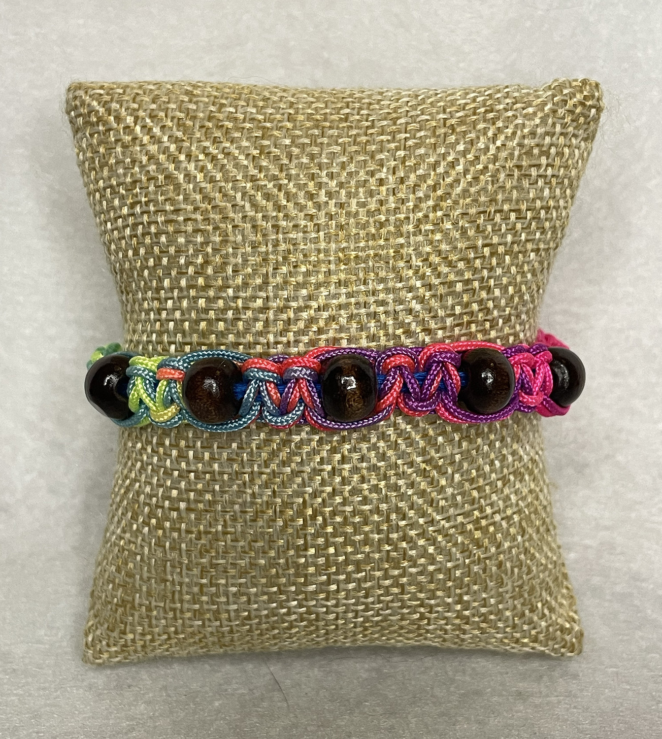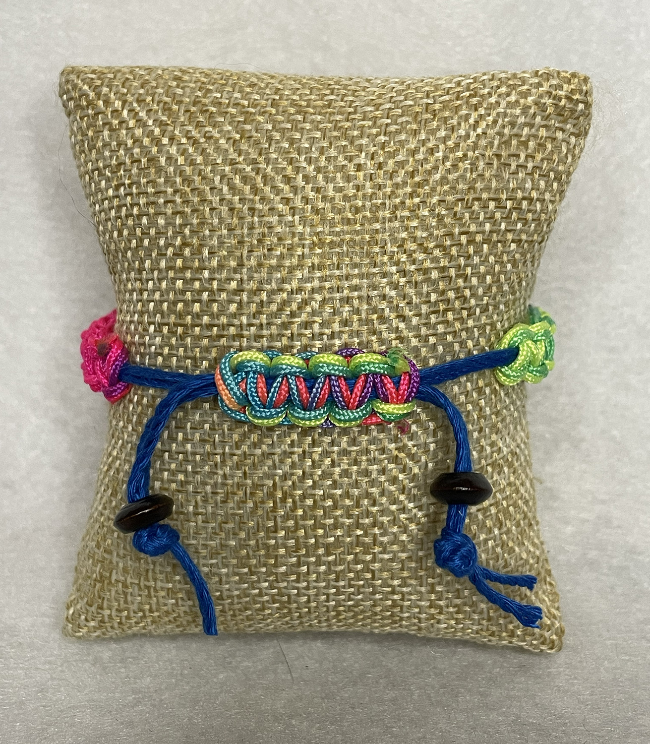 Out of Stock Add to cart Bracelets Two tone silver and white cord macrame with blue glass and metal beads