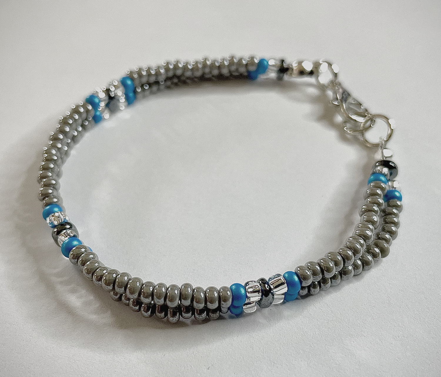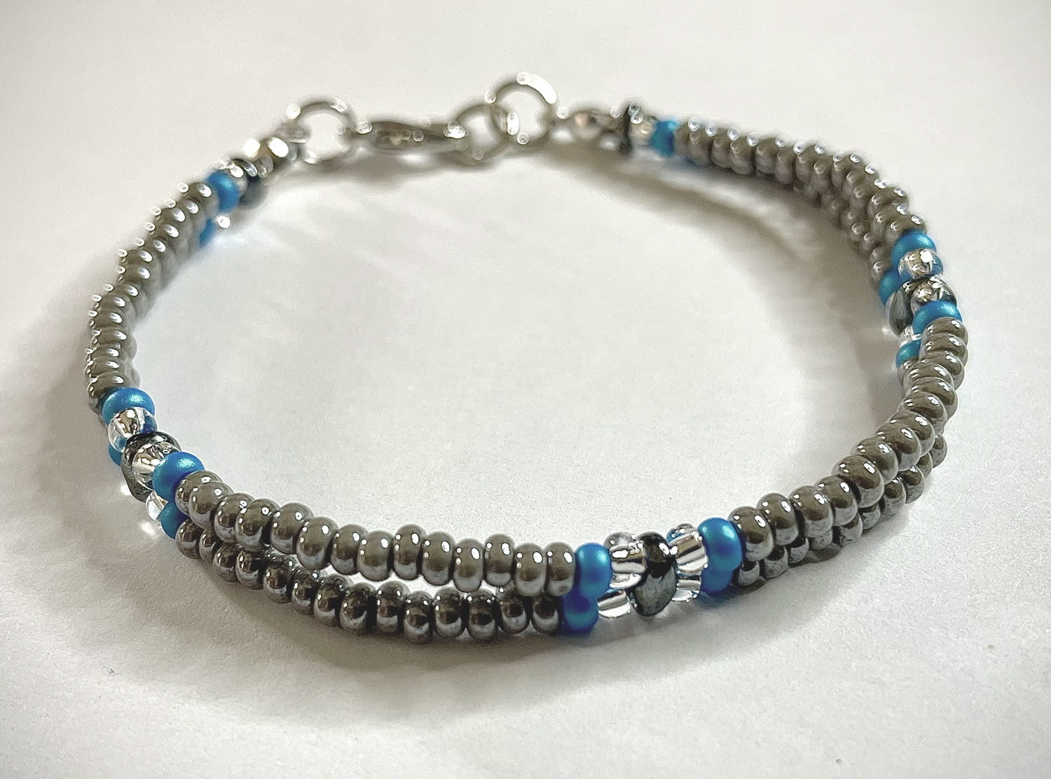 Add to cart Necklaces Gunmetal gray 8/0 glass seed bead with silver and precious stone accents $23.00