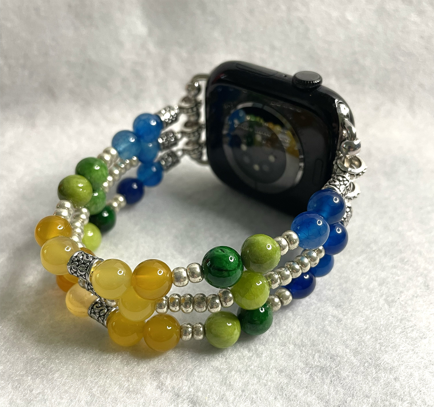 Add to cart Bracelets Green 8/0 seed bead double strand bracelet with the pearlescent accent beads $22.00